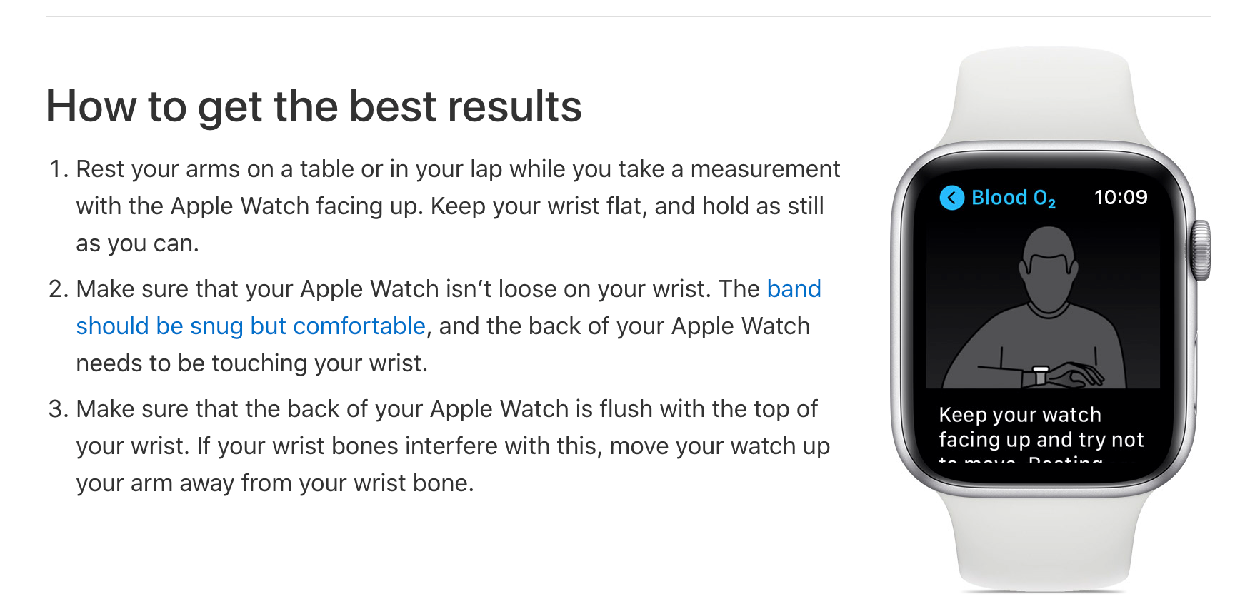 It’s also important that you make sure that the Apple Watch is flush with your wrist, as this will also affect results.