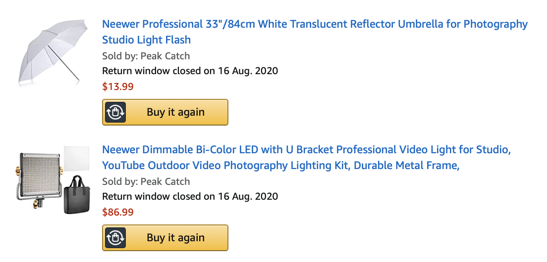 It’s not enough to have your house lights if you’re a bit more serious about production quality (though totally fine if you’re just starting out, and you can honestly use daylight if you want). In essence, you want to get a really bright light that is somehow diffuse, meaning that the light is spread apart somehow so that it hits your face more softly; otherwise, you’ll get these sharp shadows which look ugly. Lights are really expensive for the Aperture ones, so I went cheaper with this set: