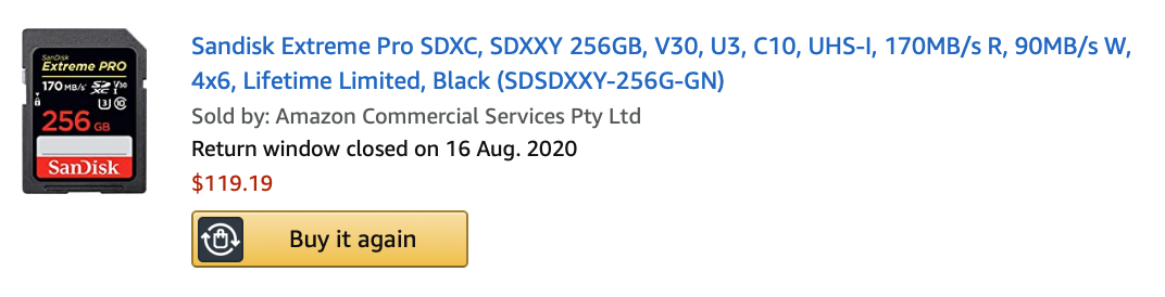 The camera itself needs an SD card, but not just any one, you have to get the correct one here too. From memory, for this particular type of camera it needs to be an SD card with a little 3 in the bucket.