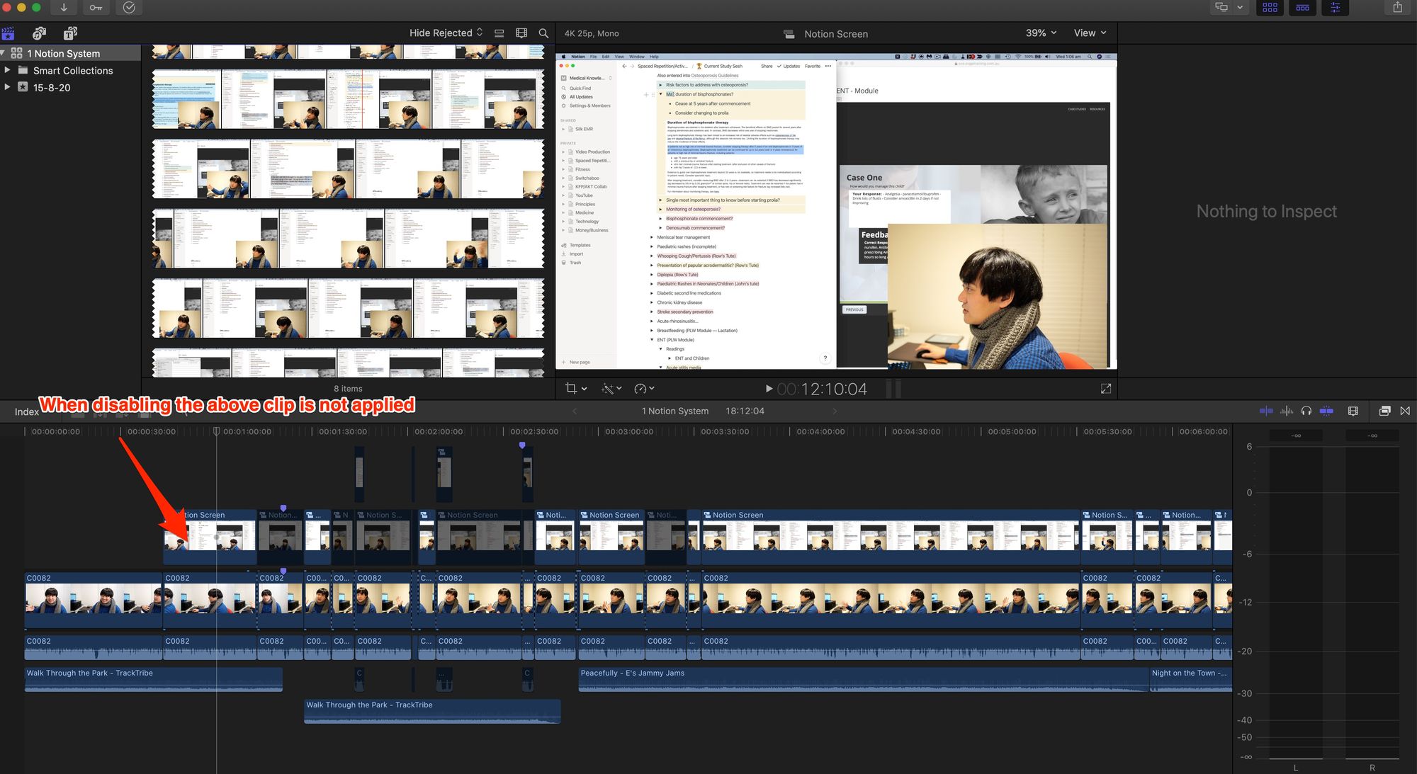 - Your “A Roll” is the main meat of your film. In my case, a talking head, i.e. myself (lol). I put this into Final Cut Pro