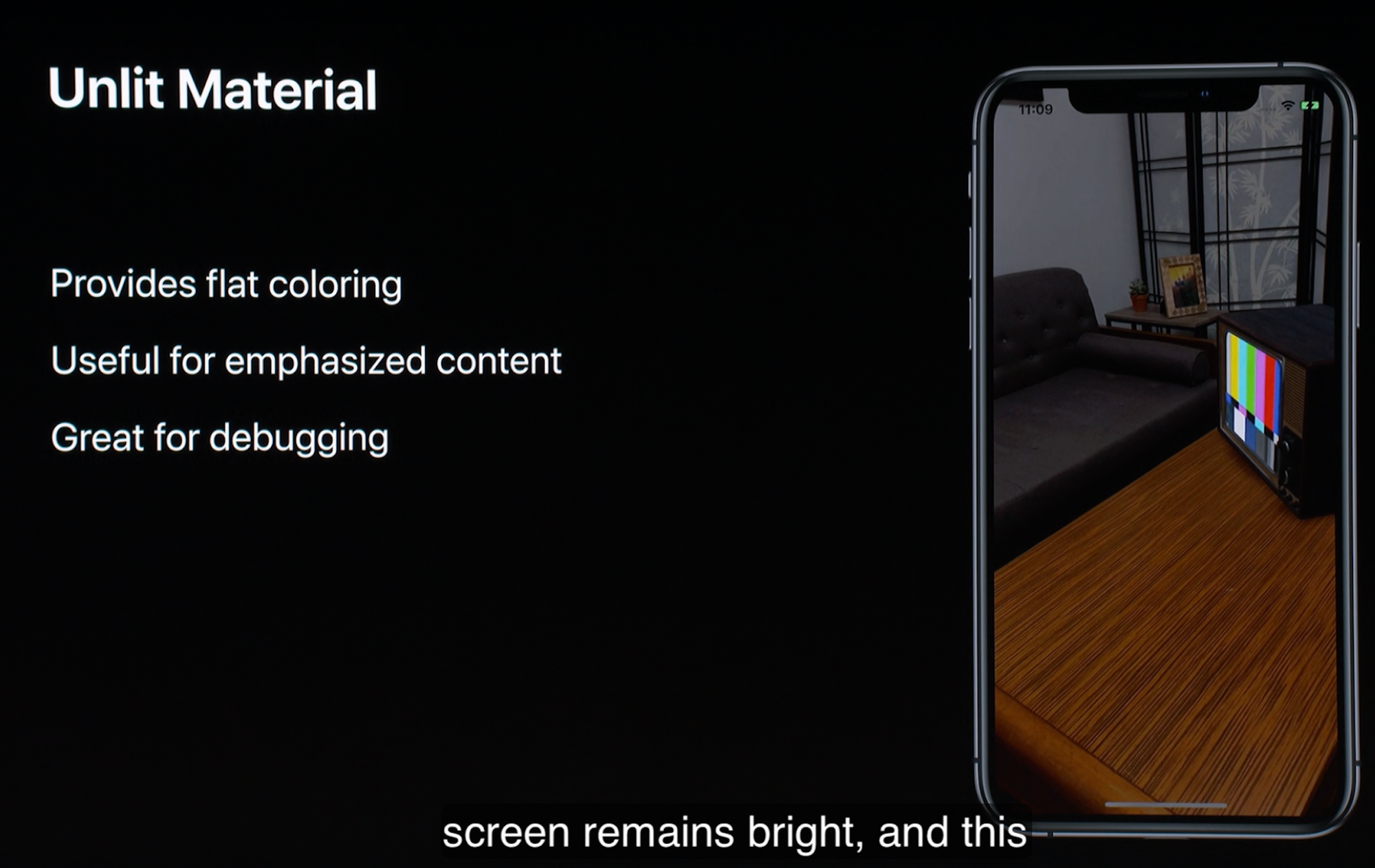 Importantly, underlying realistic appearing objects is the fact that they (conceptually) interact with light from the real world, and appear like they belong there. So for SimpleMaterial, when the room gets dark, any entity covered in SimpleMaterial similarly looks darker to match.