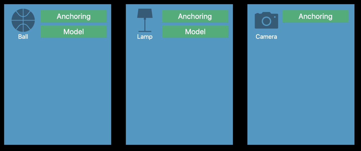 Some components are really needed throughout all kinds of models. For example, all entities need to exist in the scene. So they will all have an Anchoring component to them.