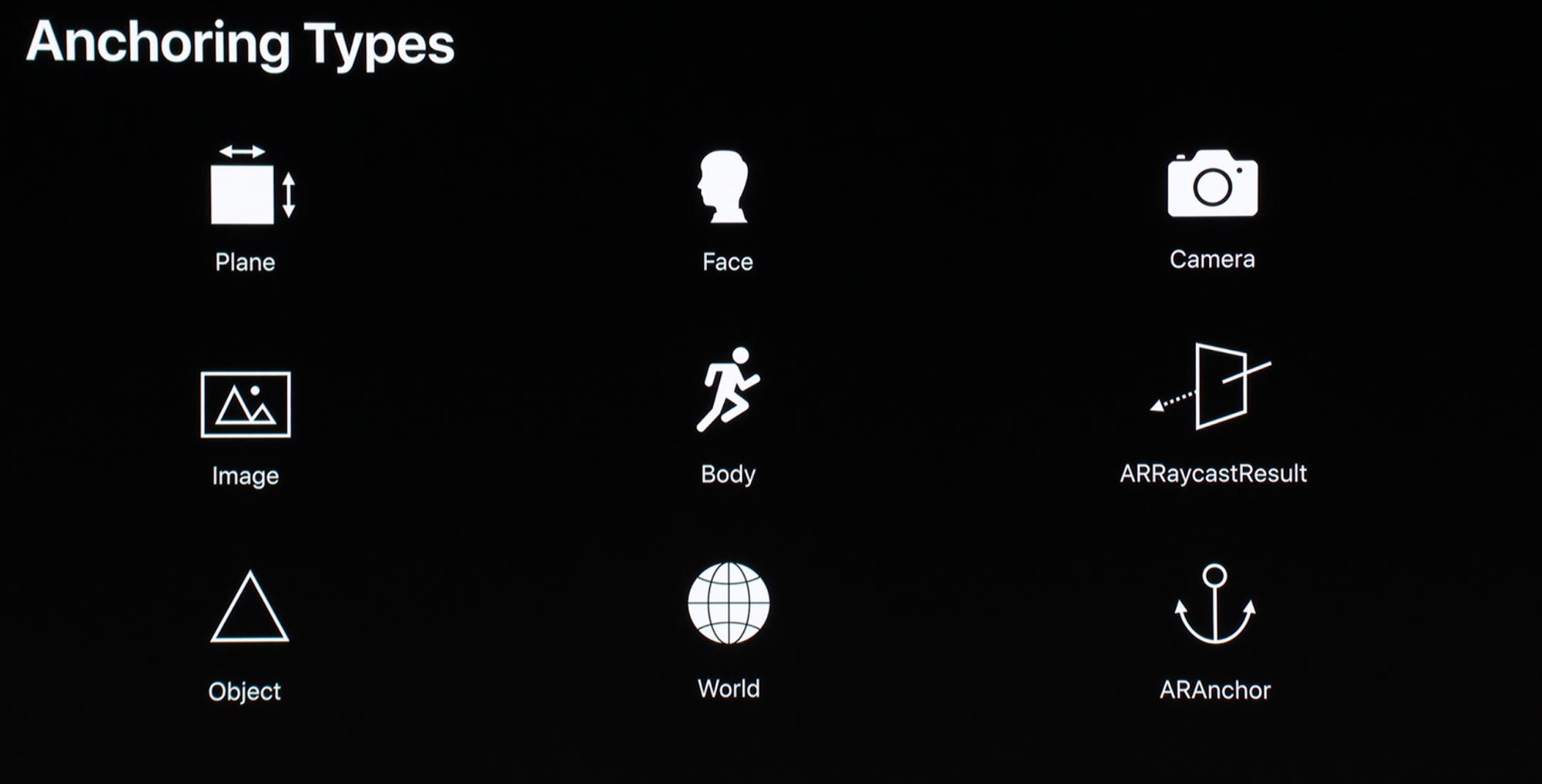RealityKit is really cool in that an anchor can be a lot of different things. For example, you can use a photo printed onto a piece of physical paper, like a QR code for example. Or you can use a person’s face, or their body, or even a flat plane (surface) like a tabletop.