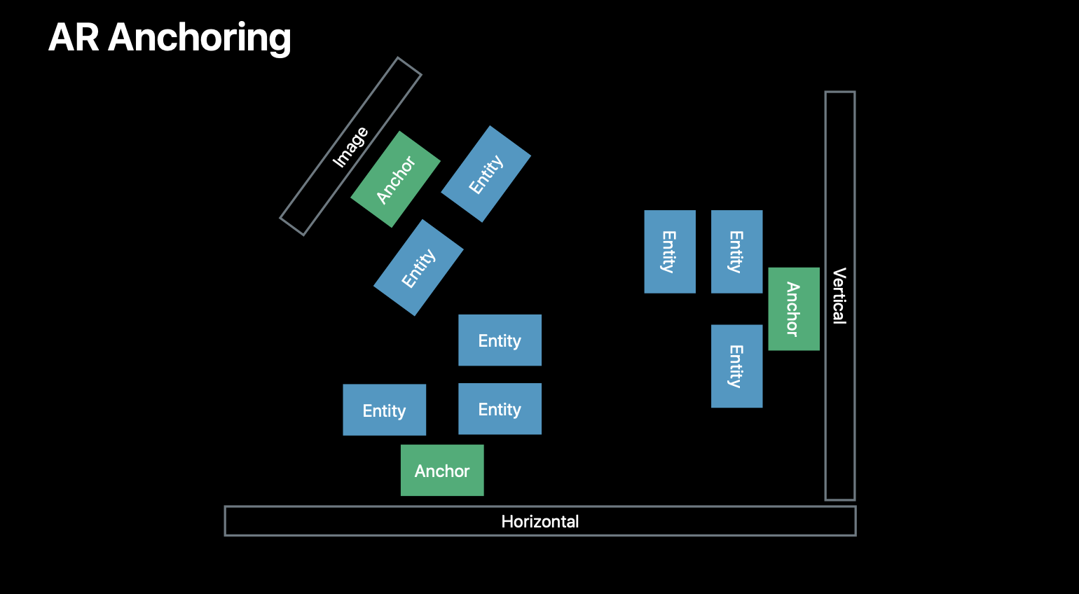 In other words, entities can be attached to anchors. Anchors are attached to the world.