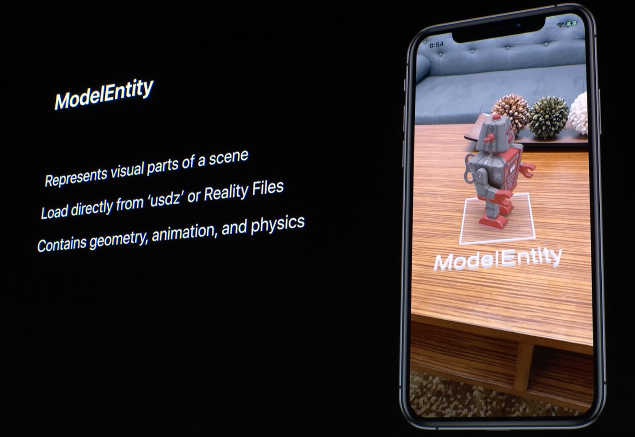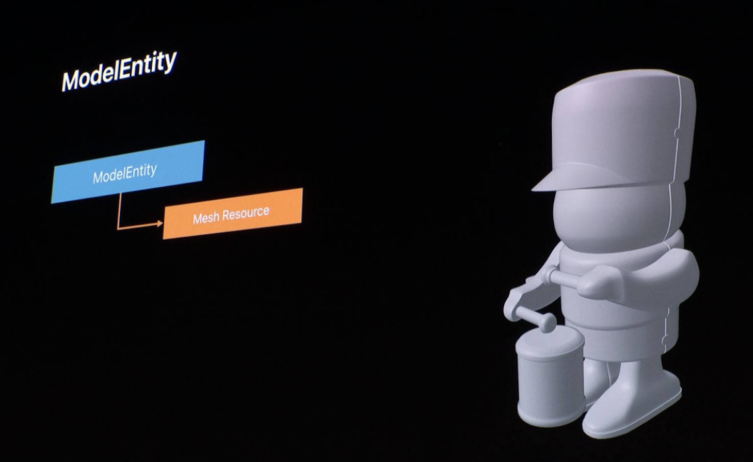 Or we can attach an actual model that we can see. And, you guessed it, it’s called a ModelEntity. A ModelEntity is basically a 3D object placed in the world.